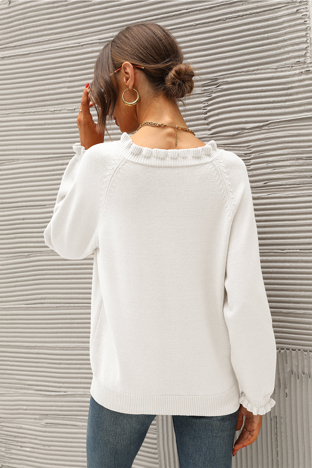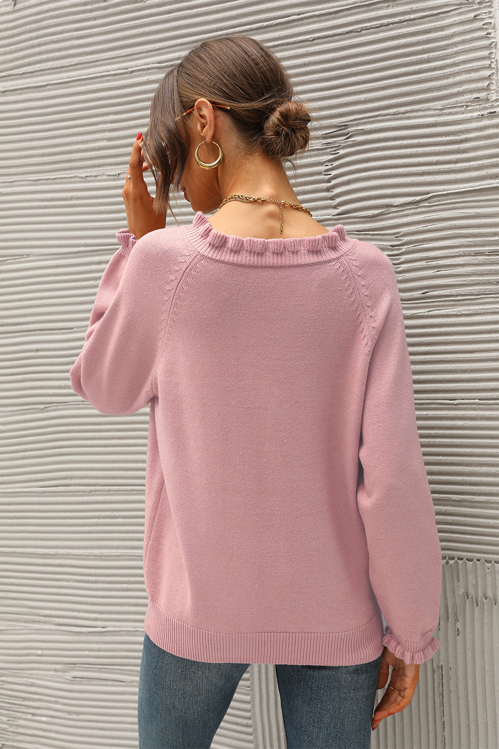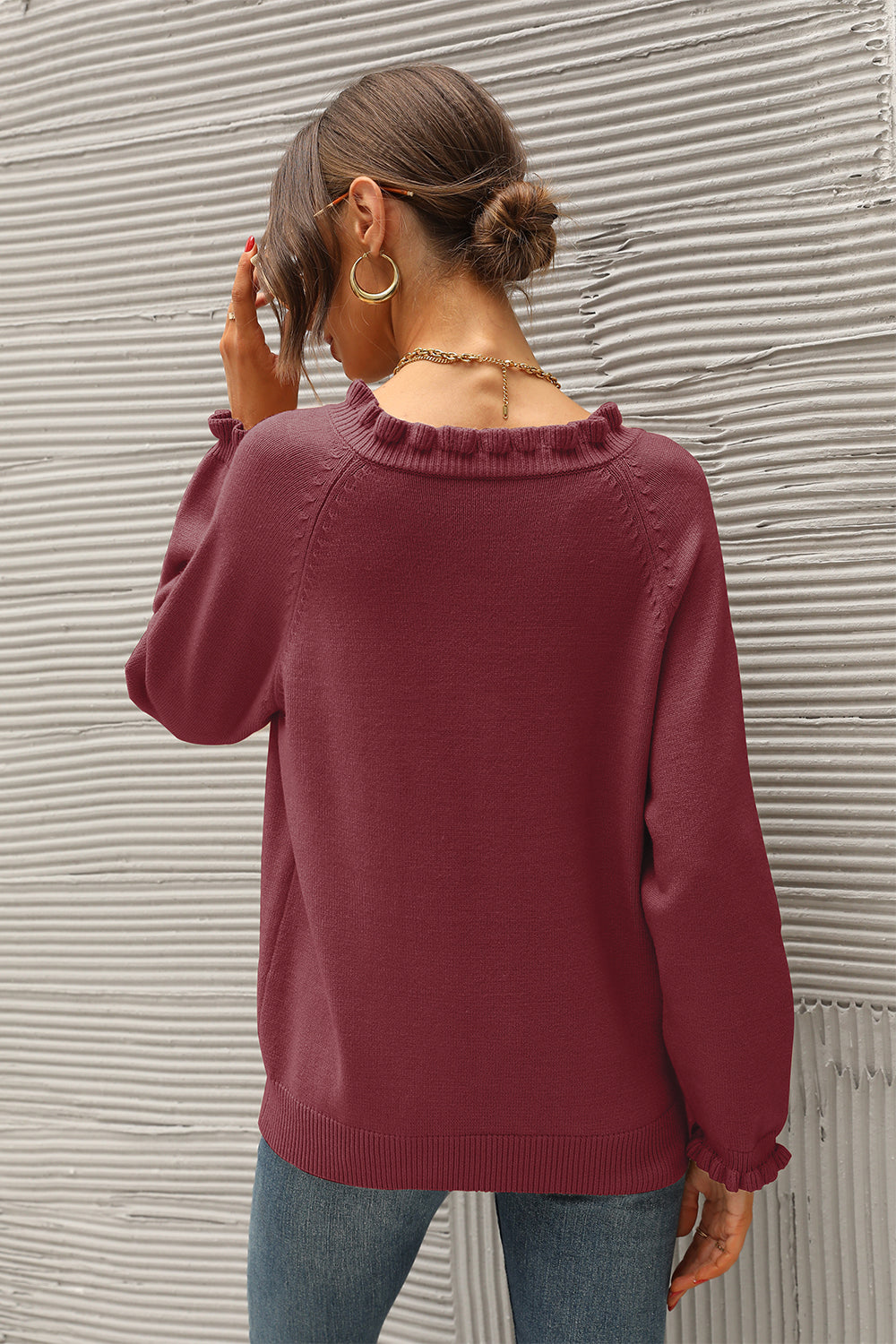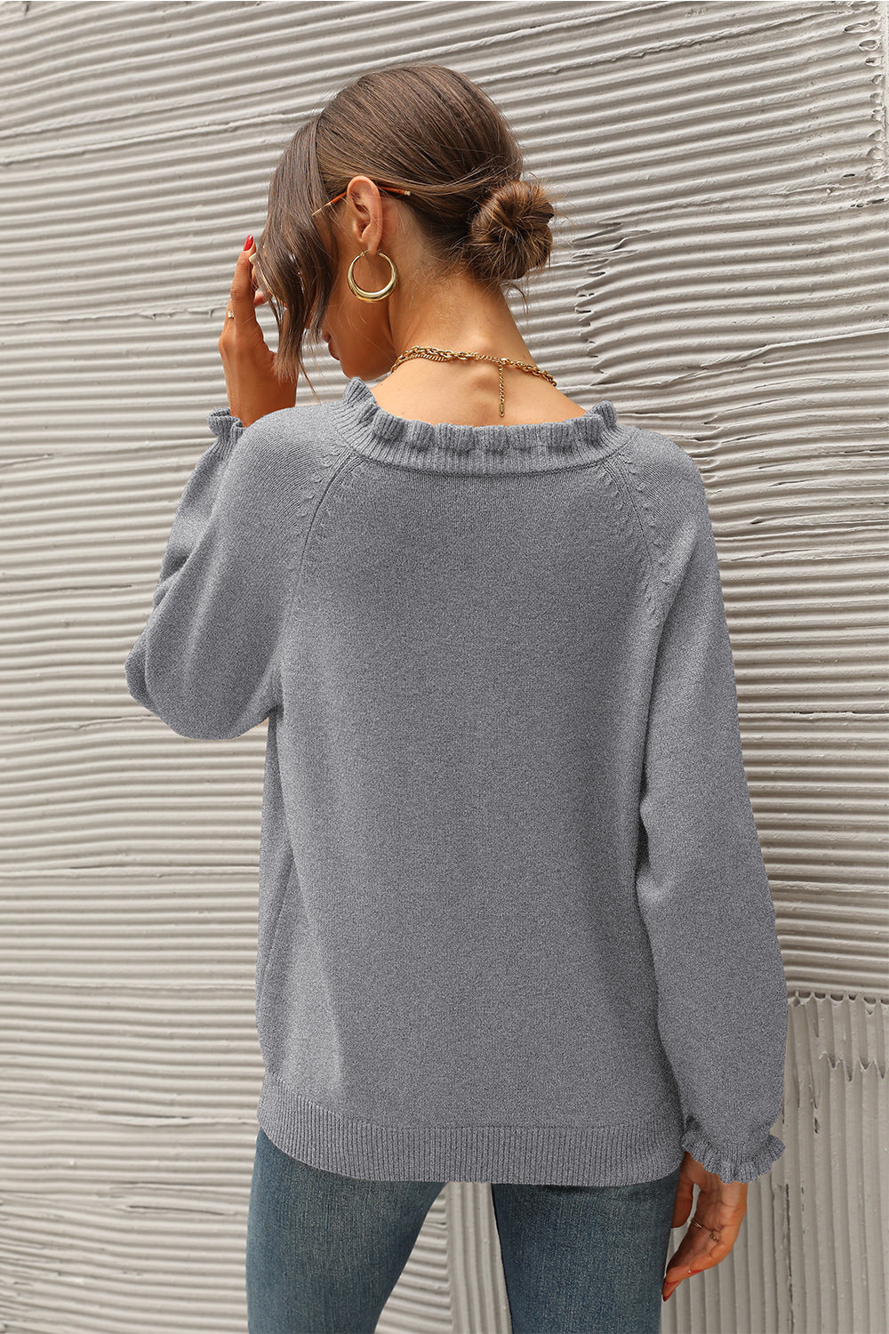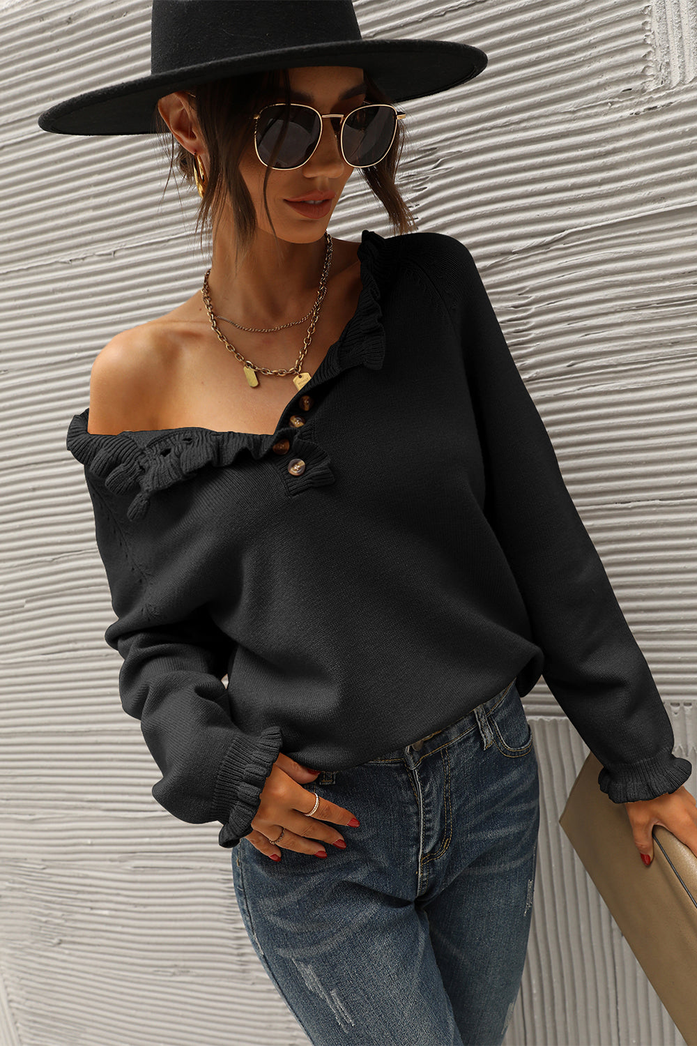 Long Sleeve Button Down Ruffle Knit Pullover Sweater Tops