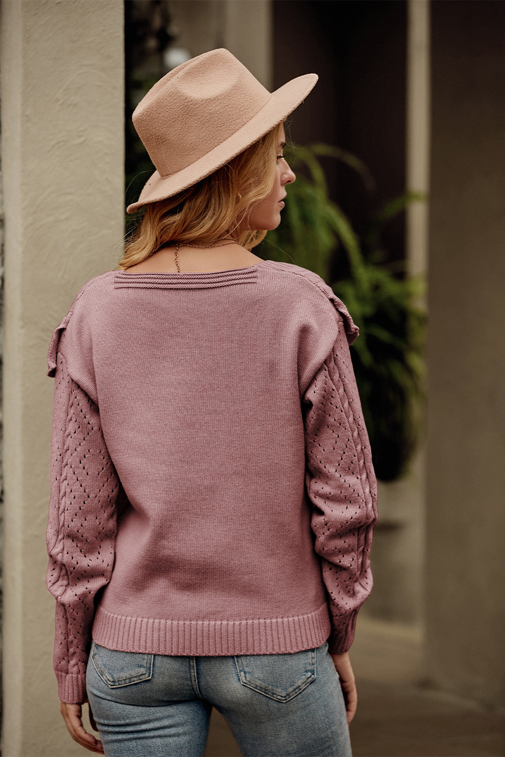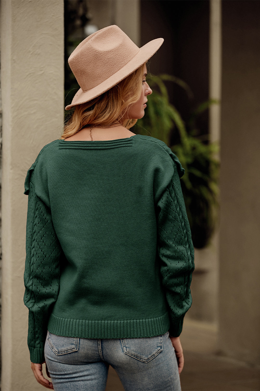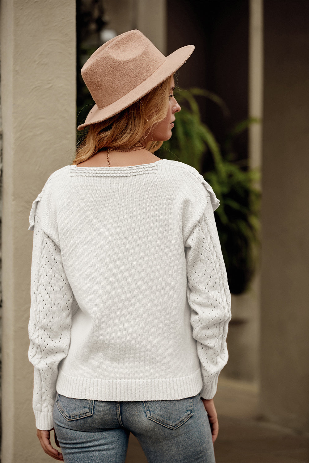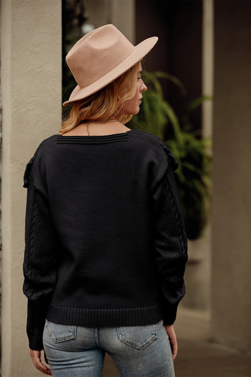 / Ruffle Cropped Button Down Knitted Cardigan
